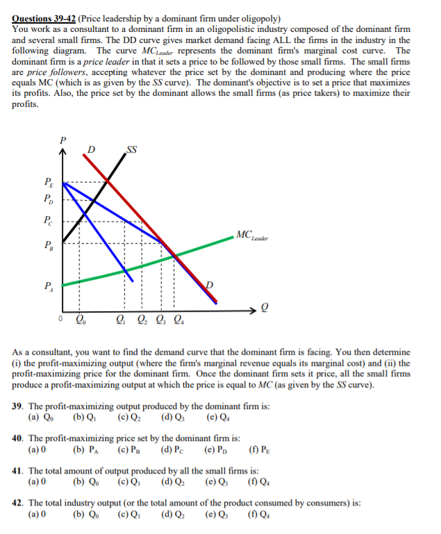Solved Questions 39 42 Price Leadership By A Dominant Firm Chegg Com